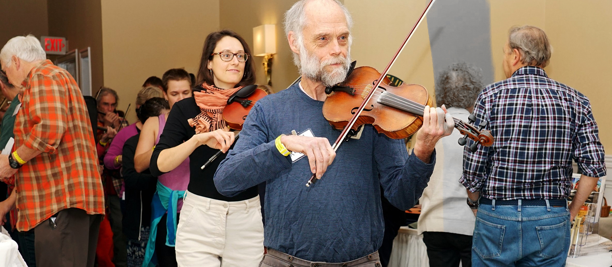 In 2019, we had 800+ musicians as attendees at the fifteenth Fiddle Hell Massachusetts, held at the Westford Regency Inn & Conference Center in Westford, MA. Participants came from as far away as Scotland, Germany, Canada, California, Alabama, Michigan, Texas and Florida, and from as near as Westford, MA, itself. They played and learned in many styles - New England, Irish, Scottish, Cape Breton, Southern Old-TIme, Bluegrass, French Canadian, Jazz, Swing, Scandinavian, Klezmer, Blues, Electric, World, and more. Many tunes were taught, along with the stylistic details of the different traditions. In-depth workshops on techniques covered jamming, learning by ear, backing up singers, music theory, bowing patterns, improvisation, looping, and much more. Informal hallway jams in 9 "jam spots" were active through most of the day and night. For attendees, instructors, and staff, 2019 was a Fiddle Hell to remember!